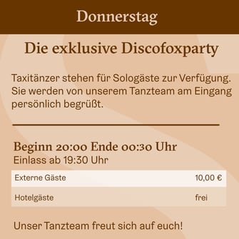 Auch bei der exklusiven Sonnenhof-Discofoxparty am Donnerstag ist pures Tanzvergnügen garantiert.