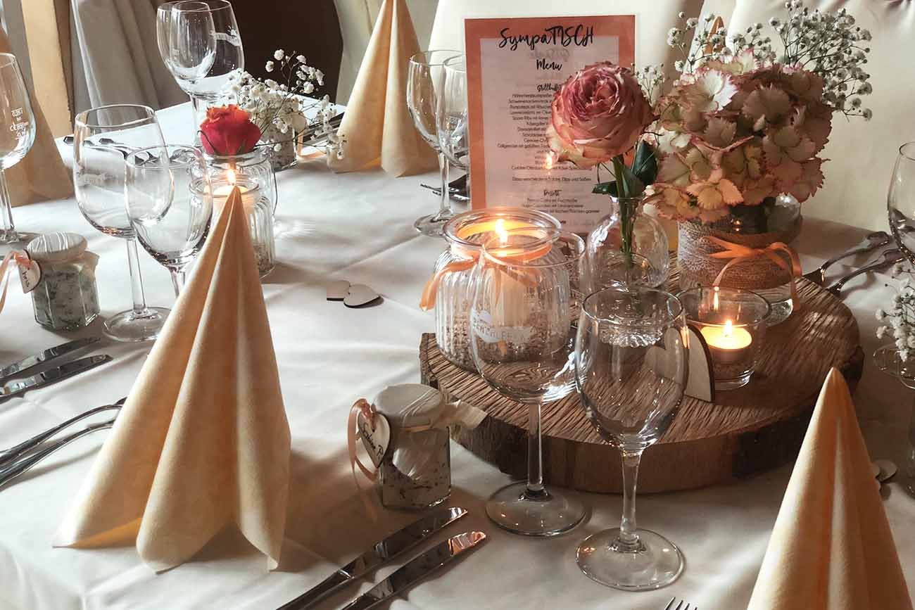 Ihre Feier ist uns eine „Herzensangelegenheit“ – damit Ihre Veranstaltung zu einem unvergesslichen Abend wird, begleitet Sie unser Team von der ersten Idee bis zum reibungslosen Ablauf und geht dabei individuell auf Ihre Wünsche ein.