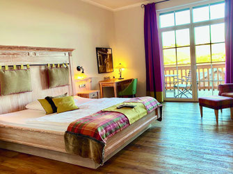 Die Zimmer und Suiten im Landhaus sind wahre Wohlfühloasen im Einklang mit der Natur. Die Sonne spielt mit den warmen Farben des mediterran anmutenden Landhaus-Interieurs. Die großzügigen Bäder
