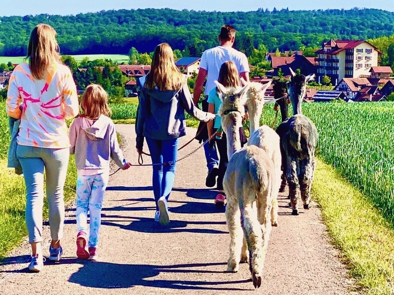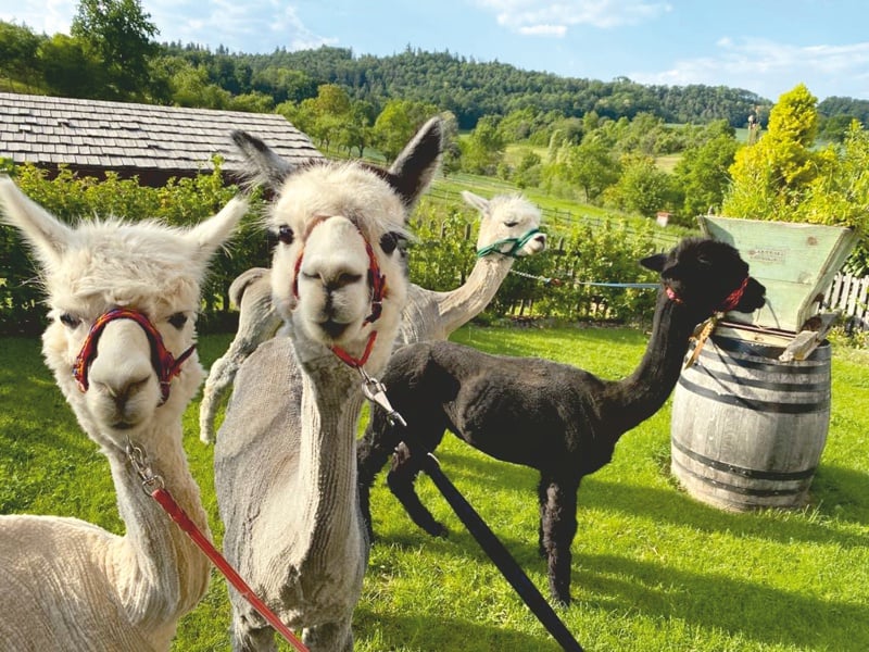 Sie sehen schon zu knuffig aus, die südamerikanischen Paarhufer. Der lange Hals und buschige Kopf auf dem wolligen Körper, Alpakas strahlen eine besondere Art der Erholung aus. Wir bieten Wanderungen mit den exotischen und geselligen Freunden an:
